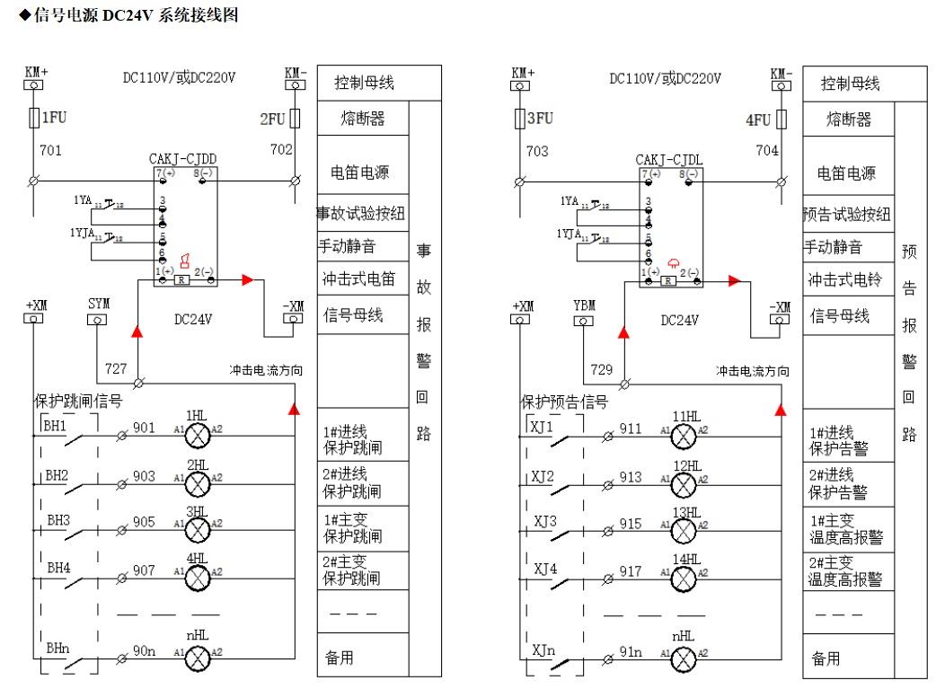 電流沖擊式電笛、電鈴,采集光字牌公共母線(公共端)或事故母線SYM、預(yù)告母線YBM的沖擊電流信號(hào), 驅(qū)動(dòng)電笛、電鈴發(fā)聲。